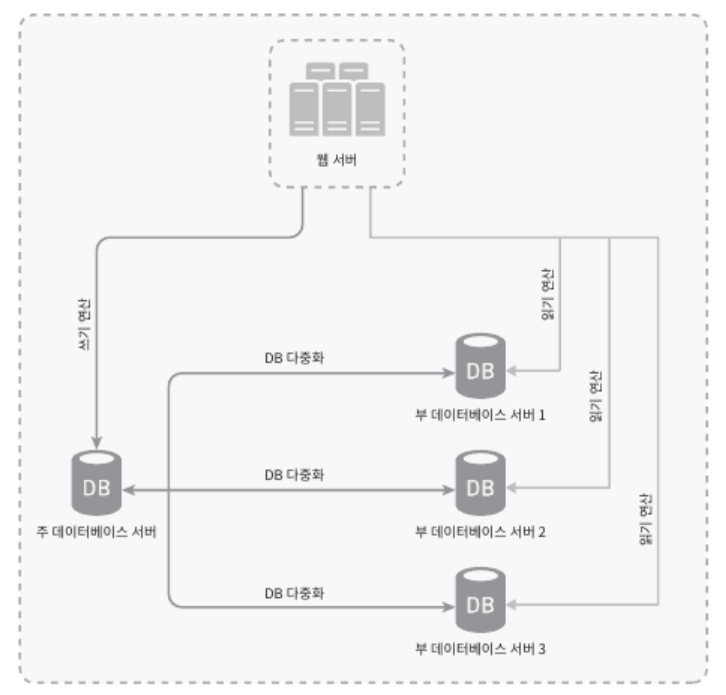 - 웹 서버는 데이터 변경 연산은 주 DB서버로 전달한다.