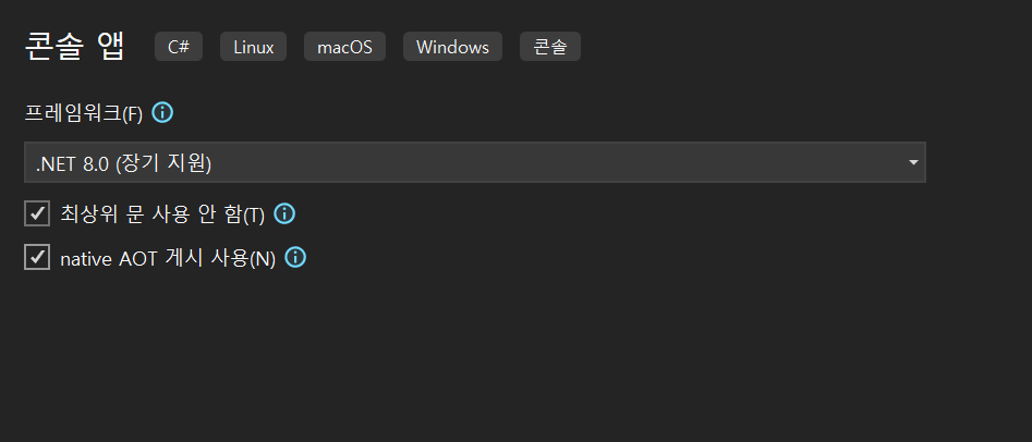 <PublishAot>true</PublishAot>게시 cli 명령은 아래와 같습니다.